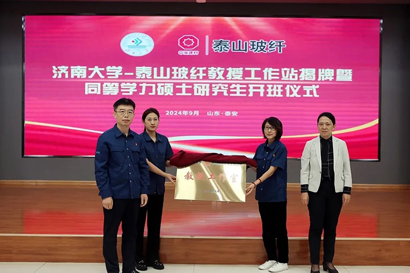 9月21日,濟南大學-泰山玻纖教授工作站揭牌暨同等學力碩士研究生開班儀式在泰山玻纖圓滿舉行。濟南大學黨委常委、副校長商華,泰山玻纖黨委書記、董事長呼躍武,黨委副書記、總經(jīng)理劉利鋒出席儀式。