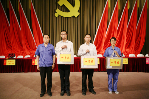 會后,舉辦了建黨94周年知識競賽?;顒蝇F(xiàn)場, 12支代表隊(duì)緊張有序地答題,扣人心弦,精彩紛呈。本次知識競賽圍繞著黨章、黨史、廠情等內(nèi)容展開,增加了理論演繹環(huán)節(jié),打破了以往單純的知識答題,對競賽項(xiàng)目進(jìn)行了改革和創(chuàng)新,使知識競賽活動不僅能充分鍛煉選手們的學(xué)習(xí)能力,而且還能全面展示選手們的綜合素質(zhì)。