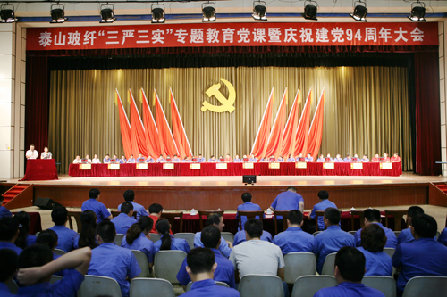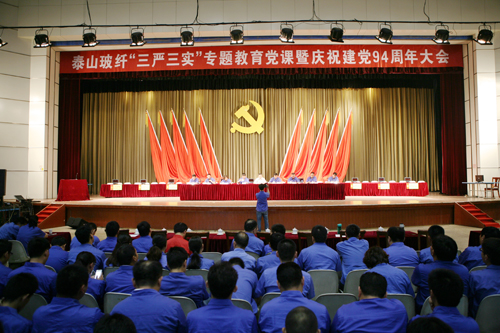 6月19日,泰山玻纖舉辦“三嚴(yán)三實(shí)”專題教育黨課暨慶祝建黨94周年大會。會上,中材股份副總裁、泰山玻纖黨委書記蘇逵以《踐行“三嚴(yán)三實(shí)” 打造優(yōu)秀領(lǐng)導(dǎo)團(tuán)隊(duì) 建設(shè)最具競爭力企業(yè)》為題,講授了“三嚴(yán)三實(shí)”專題教育黨課。會議由黨委副書記、紀(jì)委書記李成泉主持,公司董事長、總經(jīng)理唐志堯等全體黨政領(lǐng)導(dǎo)班子出席會議,公司全體黨員、主管以上管理人員共計(jì)400余人參加會議。