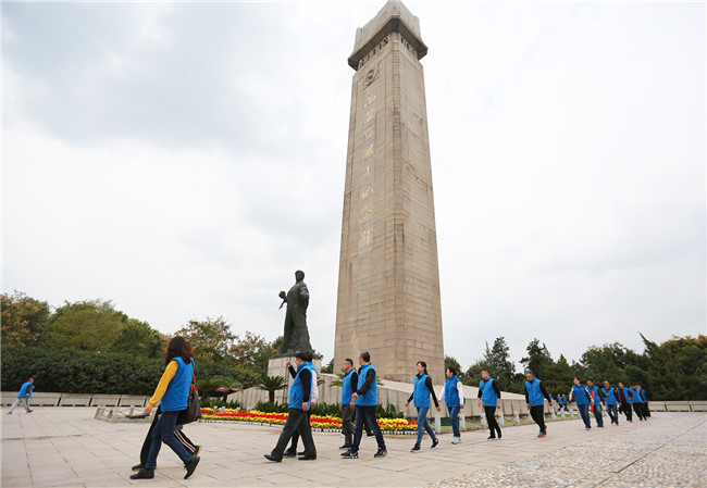 在參觀完侵華日軍南京大屠殺遇難同胞紀(jì)念館后,大家懷著無比崇敬的心情來到了雨花臺烈士陵園。莊嚴(yán)肅穆的雨花臺山岡,烈士紀(jì)念碑巍然聳立,“寧死不屈”的革命烈士塑像巍然屹立,用數(shù)萬盆鮮花鋪就的“信仰”兩個大字格外醒目。