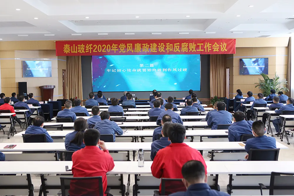 4月26日,泰山玻纖召開2020年黨風(fēng)廉政建設(shè)和反腐敗工作會議,認真學(xué)習(xí)貫徹習(xí)近平總書記在十九屆中央紀委四次全會上的重要講話和全會精神,貫徹落實中國建材集團、中國建材股份、中材科技2020年黨風(fēng)廉政建設(shè)和反腐敗工作會議要求,總結(jié)公司2019年度黨風(fēng)廉政建設(shè)和反腐敗工作,研究部署2020年重點工作。公司董事長唐志堯,黨委書記吳龍,黨委委員、總經(jīng)理呼躍武,紀委書記王麗英等全體黨政領(lǐng)導(dǎo)班子成員,所屬各單位班子成員,中層以上管理人員參加會議。會議由呼躍武主持。